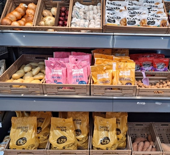 La nueva marca del Grupo Lázaro trabaja la categoría completa, desde formatos con una patata versátil, apta para todos los usos culinarios, así como usos culinarios específicos, como lo es la patata para freír, la patata roja y las patatas de guarnición. Además, cada referencia viene acompañada por un personaje que con humor refleja el uso culinario de la patata que contiene la bolsa. Todas ellas están disponibles en envases 100% reciclables en línea con el compromiso que la empresa tiene con la sostenibilidad y con la reducción de su huella de carbono.