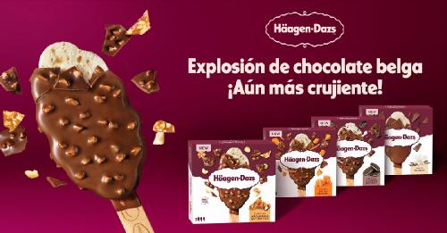El formato bombón de la marca invita a todos a disfrutar del placer de sus reconocibles sabores en cualquier ocasión. La innovadora propuesta destaca por su mezcla de texturas e ingredientes, algo que está presente tanto en su exterior como en su interior . En la parte externa del bombón, Häagen-Dazs ha trabajado para ofrecer una generosa cobertura de chocolate belga y crujiente, además de incluir en algunos de los sabores trozos de cookies o frutos secos para que la mezcla de texturas crujiente y cremosa genere una experiencia irresistible en cada bocado.