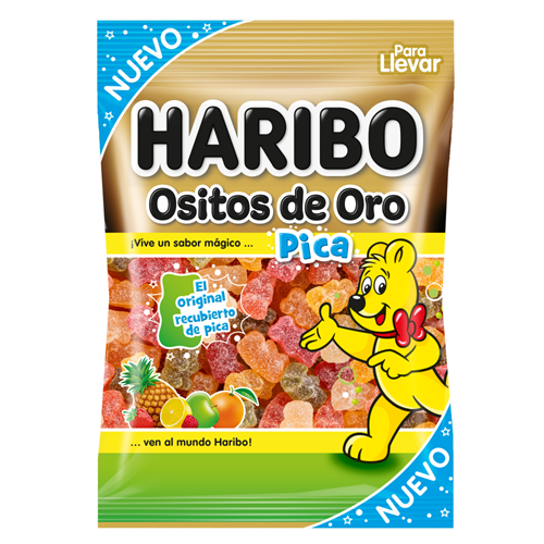 Haribo amplía su gama de productos con el nuevo lanzamiento de Ositos de Oro Pica. Tras los Ositos de Oro originales, los Ositos de Oro recubiertos de azúcar y los Ositos de Oro Fresas Mix, llega la cuarta generación de la familia Ositos de Oro.