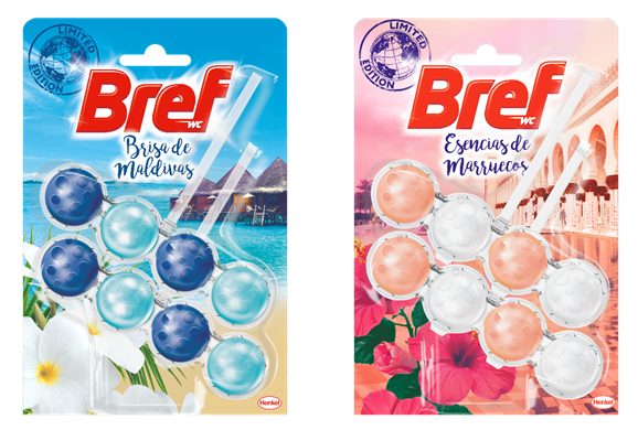 Para este nuevo lanzamiento, Bref te propone transportarte a dos lugares muy diferentes, pero igual de mágicos y embriagadores. Disfruta del ambiente más evocador a través de las nuevas y originales variedades de la edición limitada: Brisa de Maldivas y Esencias de Marruecos, que ofrecen la manera más cómoda y original de mantener tu WC limpio y fresco, consiguiendo así una mayor higiene para ti y para los tuyos. Además, aportan un aroma envolvente para una experiencia sensorial de limpieza en el WC que dura hasta 4 semanas.