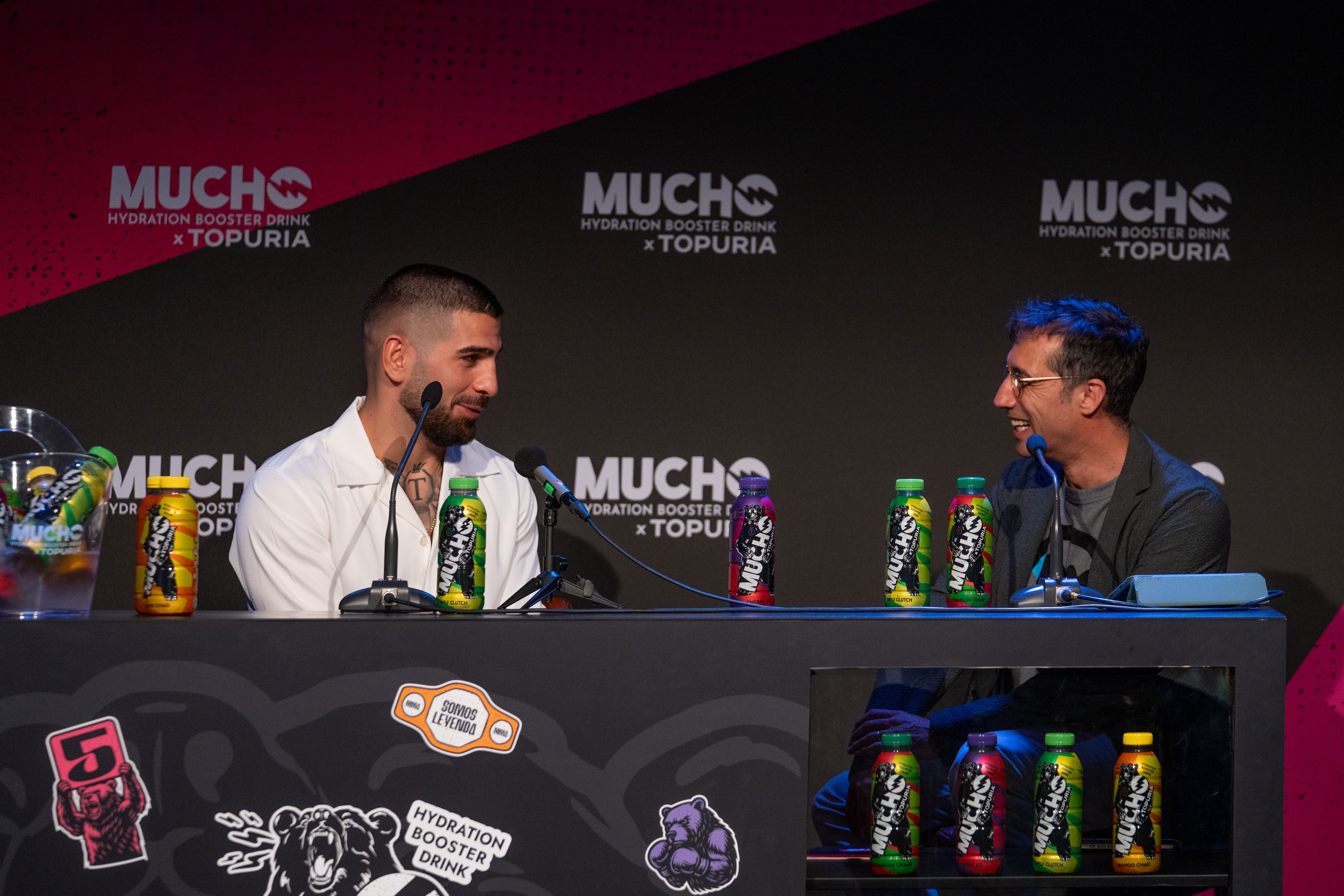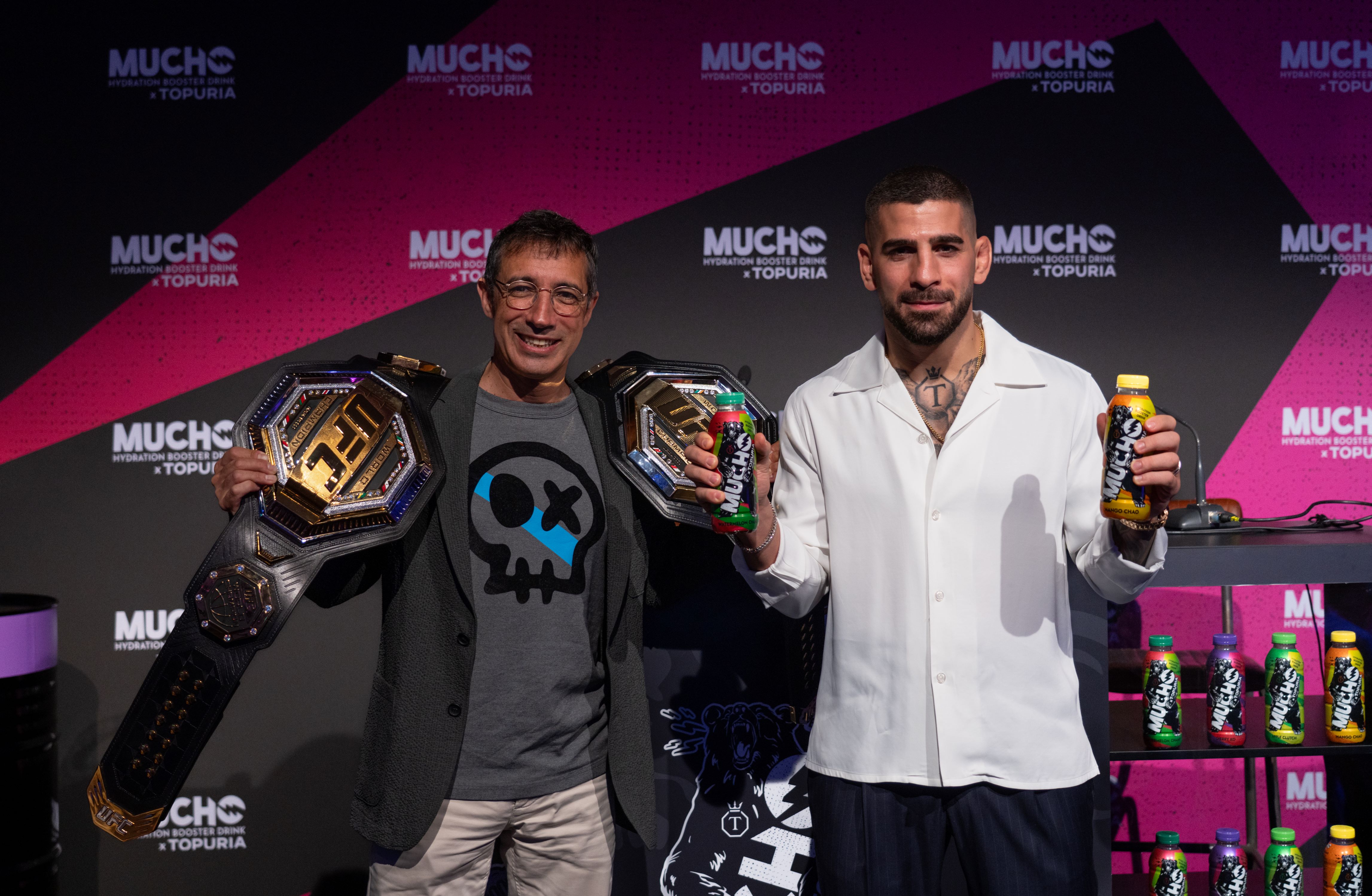 Hijos de Rivera e Ilia Topuria presentan MUCHO, una nueva marca de bebidas funcionales que ofrece un boost de energía natural, sin azúcar y sin cafeína. Esta nueva marca, desarrollada con el luchador de artes marciales mixtas, ofrece una bebida funcional saludable que mejora la preparación física y mental.