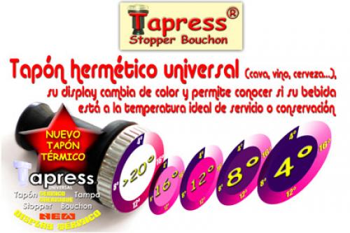 La compañía Ideajit ha desarrollado el tapón TAPRESs, caracterizado por su cierre totalmente hermético para cualquier tipo de botella de vidrio convencional. El producto logra aunar discreción y elegancia, sin romper la estética de la botella. El funcionamiento es muy sencillo, en tanto no requiere de herramientas auxiliares, sino que basta abrirlo con las manos. Con respecto a su limpieza, ésta resulta muy fácil pues el tapón es desmontable y puede lavarse en el lavavajillas como un utensilio de cocina más. Además, Ideajit ha incorporado recientemente una nueva función térmica, que sirve para conocer la temperatura de conservación o servicio de la bebida.