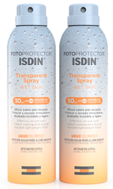 El Fotoprotector ISDIN Transparent Spray WET SKIN es el fotoprotector corporal de referencia y líder en la categoría de sprays del mercado español.