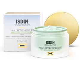 ISDIN, laboratorio internacional líder en dermocosmética, presenta la última innovación de su línea ISDINCEUTICS, la crema hidratante Hyaluronic Moisture Oily Skin para pieles mixtas y grasas. Con el lanzamiento de esta crema ISDIN completa su portfolio de cremas con ácido hialurónico formado por tres cremas pensadas para cada tipo de piel (normales a secas, sensibles y grasas).
