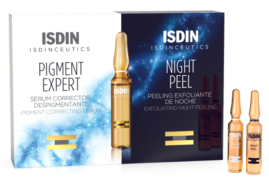 - Para la noche, Isdinceutics NIGHT PEEL, un peeling exfoliante de noche que renueva la piel mientras duermes atenuando arrugas y manchas.