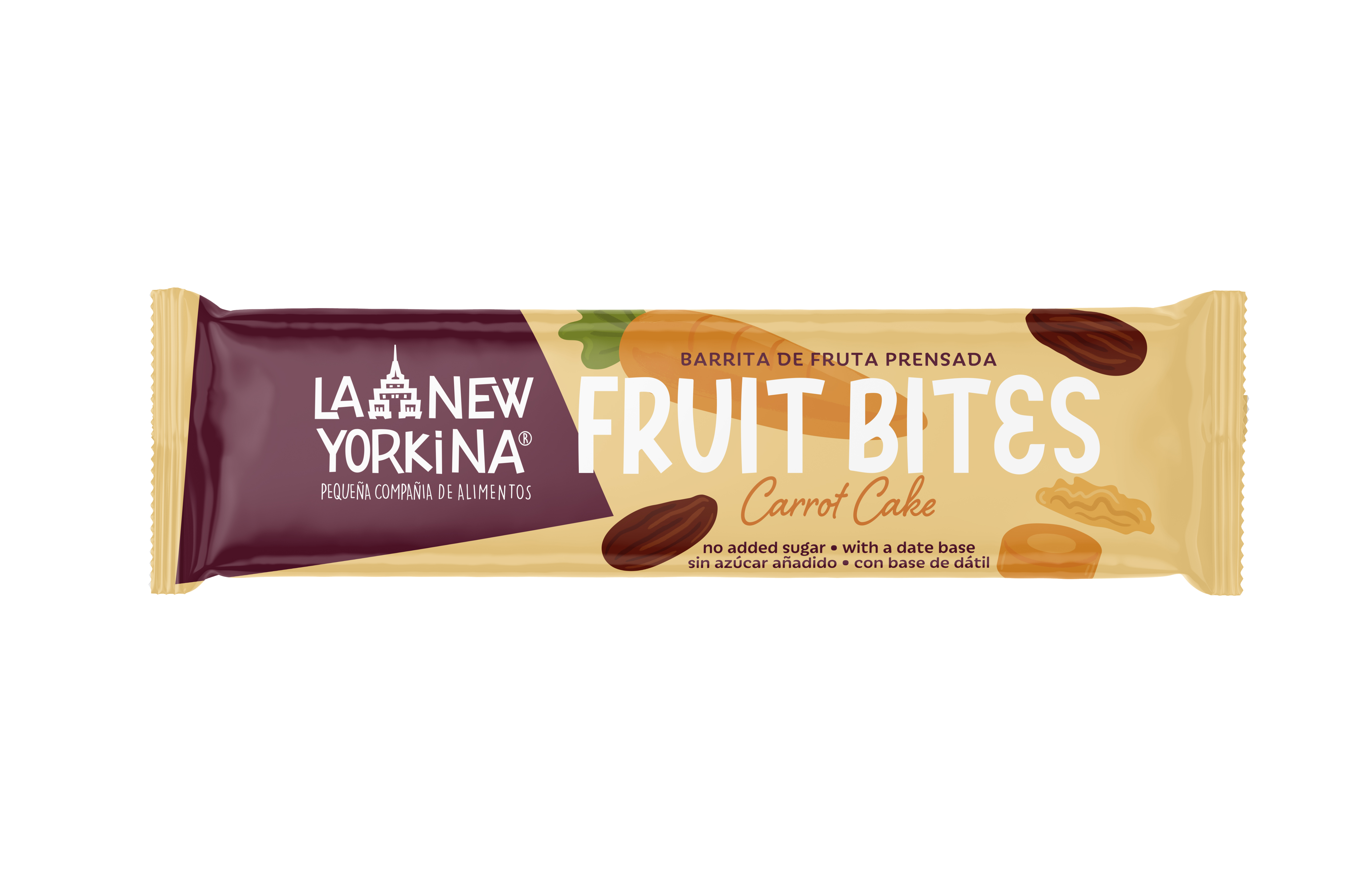 Barrita energética de fruta prensada con sabor a carrot cake: