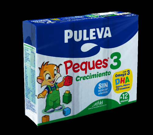 Puleva Peques 3 es una leche adaptada, especialmente formulada para niños a partir de los 12 meses, una etapa clave en su desarrollo físico y cognitivo. Su composición responde a las recomendaciones pediátricas más actuales e incluye: