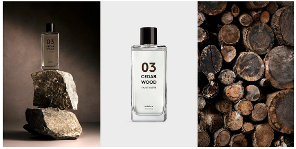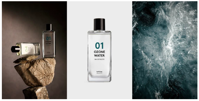 La primera línea de perfumería de Lefties para hombre presenta una colección de fragancias y perfumes con cuatro creaciones con notas de agua, madera, incienso, vainilla, ozono o cacao que encontraremos en Ozone Water, con notas base de vainilla, altas de nuez moscada, ozono y notas de corazón; Inciense, con notas base de ámbar gris, altas de incienso y notas de corazón de madera; Cedar Wood, con notas bases de tonca, altas de lavanda y notas de corazón de madera de cedro y Deep Sage, cuya nota base es el cacao, integrada con notas altas de pimienta y notas de corazón de Salvia.