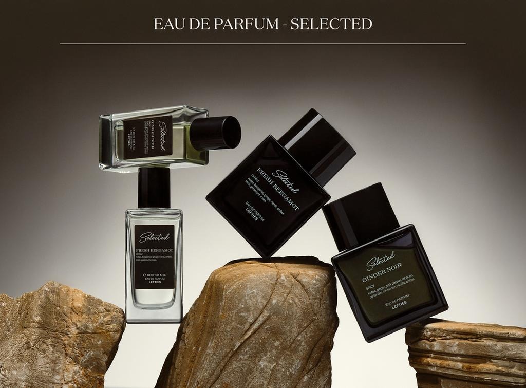 • Selected – Perfume Intense. Profunda y sofisticada, con vetiver, cuero y sándalo, pensada para los momentos más especiales.