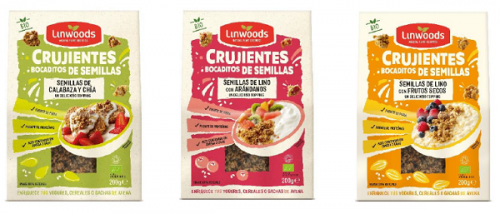 Linwoods ha trasladado el concepto granola a las semillas elaborando la gama de CRUJIENTES BOCADITOS DE SEMILLAS BIO, que contienen diferentes combinaciones de semillas, frutos secos y frutas. Son una rica fuente de nutrientes además de crujientes, sabrosos y naturales. Son bio, sin gluten y aptos para dietas vegetarianas y todo ello en un envase 100% reciclable.