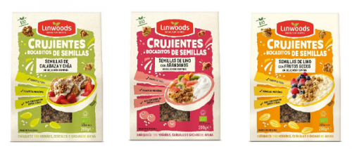 Linwoods ha trasladado el concepto granola a las semillas elaborando la gama de CRUJIENTES BOCADITOS DE SEMILLAS BIO, que contienen diferentes combinaciones de semillas, frutos secos y frutas. Son una rica fuente de nutrientes además de crujientes, sabrosos y naturales. Son bio, sin gluten y aptos para dietas vegetarianas y todo ello en un envase 100% reciclable.