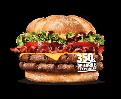 Cuenta con 350 gramos de carne de tres centímetros de grosor, y como todas hamburguesas, 100% de vacuno y cocinada a la parrilla, que aportan un sabor único y exclusivo a esta creación.