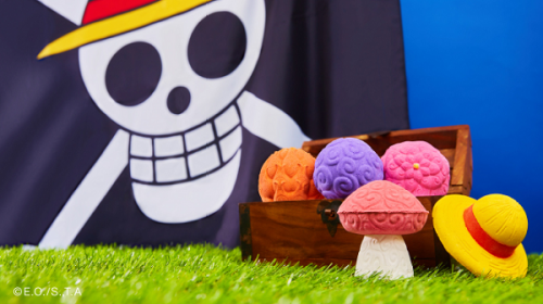 La colaboración cuenta con seis productos, entre ellos cuatro bombas de baño inspiradas en la “Fruta del Diablo”, que en la historia otorga un misterioso poder con un solo mordisco; una burbuja de baño inspirada en el sombrero de paja de Luffy y un Knot Wrap (el envoltorio de regalo reutilizable de Lush) con la simbólica bandera pirata de Luffy y su tripulación.