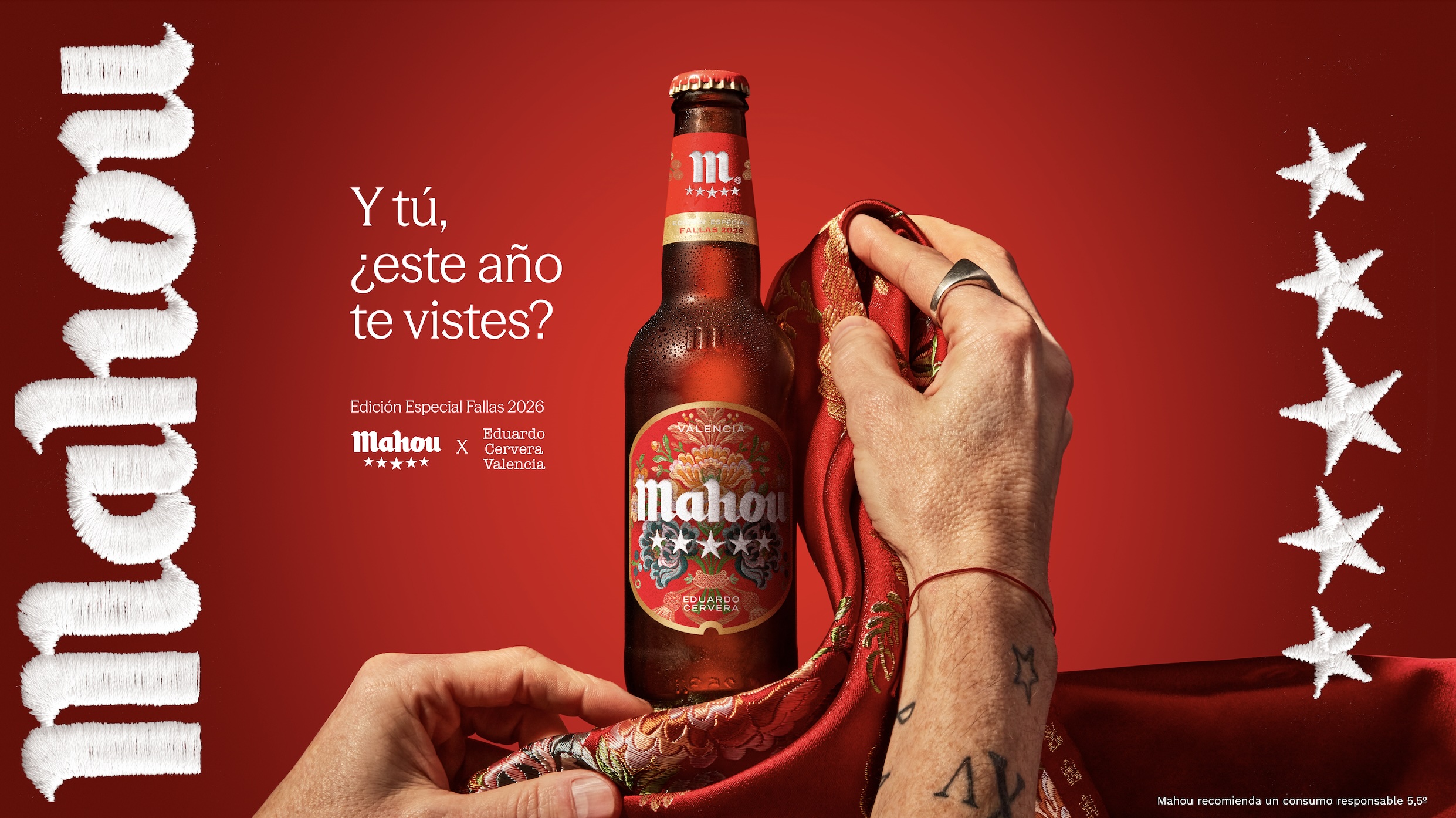 Las Fallas comienzan mucho antes de que la pólvora y el fuego llenen las calles. Empiezan en los tejidos y bordados con los que la ciudad se prepara para vivir su fiesta. Así, Mahou Cinco Estrellas rinde homenaje a una de las mayores fiestas nacionales y lanza una edición especial inspirada en la indumentaria valenciana.