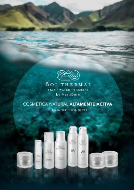 Basada en sus propiedades únicas, el Grupo MartiDerm presenta Boí Thermal, una avanzada línea de cosmética natural altamente activa, con un ingrediente exclusivo e irreproducible, el agua mineromedicinal de los manantiales de Caldes de Boí en los Pirineos de Lleida, un enclave único con unas fuentes ya usadas por sus propiedades curativas por los romanos en el siglo I.