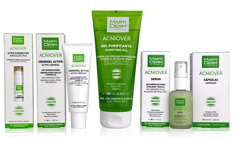 La estrategia de MartiDerm consiste en incorporar probióticos y prebióticos a dichos productos para mantener el equilibrio de la microbiota y conseguir una piel libre de imperfecciones. Acniover, una gama completa con 5 productos y 3 sencillos pasos: 1. Limpiar, 2. Prevenir y 3. Controlar para mantener bajo control la piel con tendencia acneica. Estudios clínicos avalan su eficacia: elimina el 91% de las bacterias producidas por el acné, disminuye un 83% las imperfecciones y en un 70% la producción de sebo.