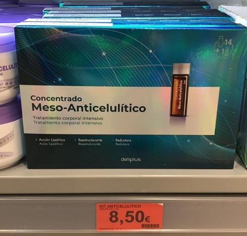 El Concentrado Meso-Anticelulítico, elaborado bajo la marca Deliplus por el Proveedor Totaler RNB en sus instalaciones de La Pobla de Vallbona (Valencia), se vende en una caja con 14 viales y tiene dos formas de uso, como tratamiento de choque durante 14 días aplicado directamente sobre a piel, o bien, como tratamiento de mantenimiento mezclándolo con la crema habitual.