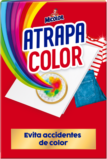 Elaboradas con fibras extra absorbentes para una máxima protección, las toallitas Atrapa Color se han convertido en un imprescindible para los hogares gracias a su tecnología, que actúa como un imán, atrapando las partículas de color en el agua y previniendo así accidentes de transferencia de color durante el lavado.