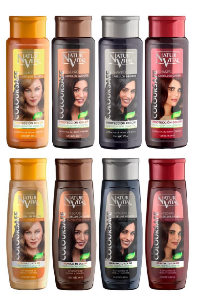 Los champús y mascarillas ColourSafe están disponibles en 4 tonos: negro, castaño, caoba y rubio. Cuentan con nueva botella muy ligera, atractiva y ergonómica. Elaborada con plástico PET 100% reciclado, el nuevo envase permite a NaturVital ahorrar más de 15.000 kg de plástico al año y reducir un 25% el impacto ambiental de sus productos.