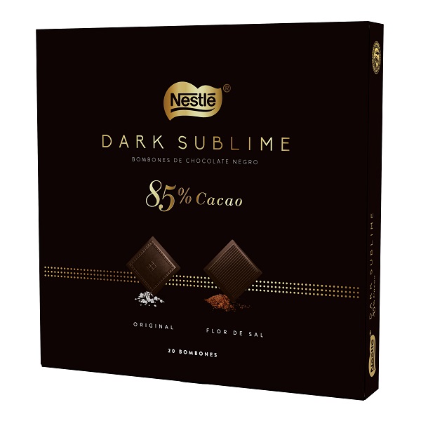 - Nestlé Dark Sublime 85 cacao Los amantes del chocolate más intenso cuentan con dos de las clásicas recetas de los bombones de NESTLÉ DARK SUBLIME original y flor de sal ahora con más intensidad, gracias a los ingredientes especialmente seleccionados y sus altos porcentajes de cacao.