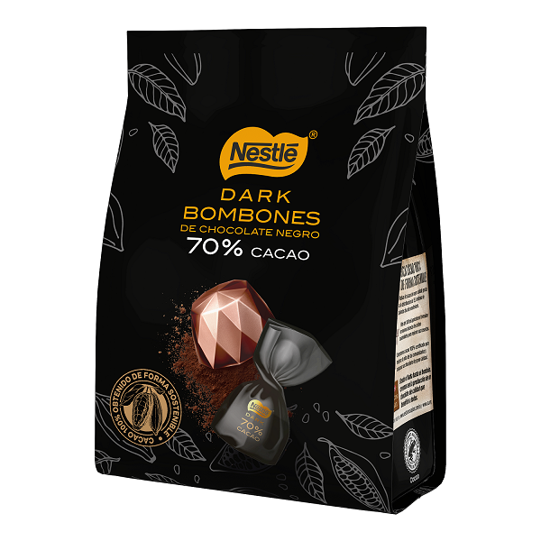 - Nuevo bombón 70 cacao Deliciosa cobertura de intenso chocolate negro 70 cacao con un corazón de cremoso relleno Presentado en formato bolsa y con bombones envueltos de manera individual, son una opción ideal tanto para compartir como para disfrutar en el día a día.