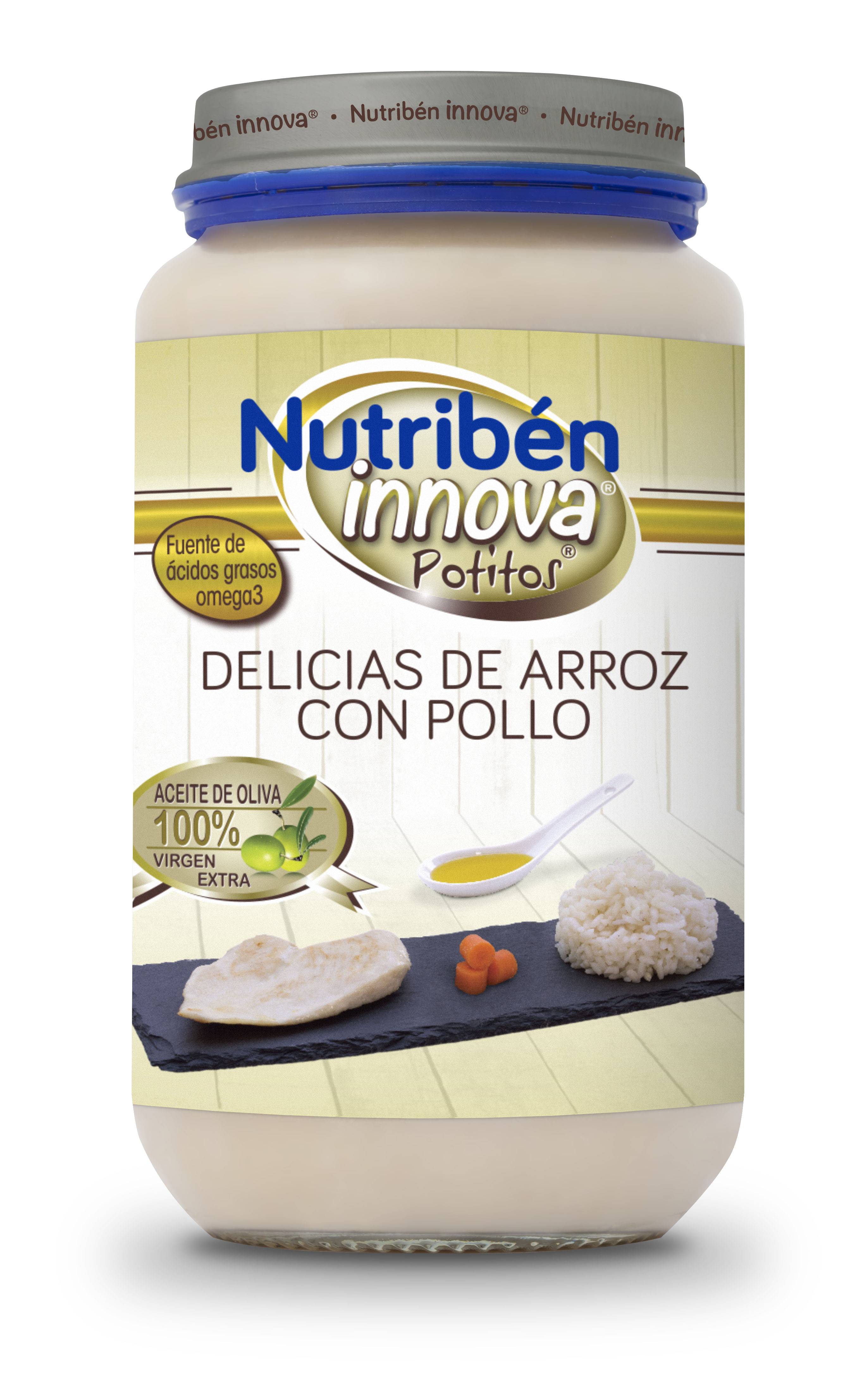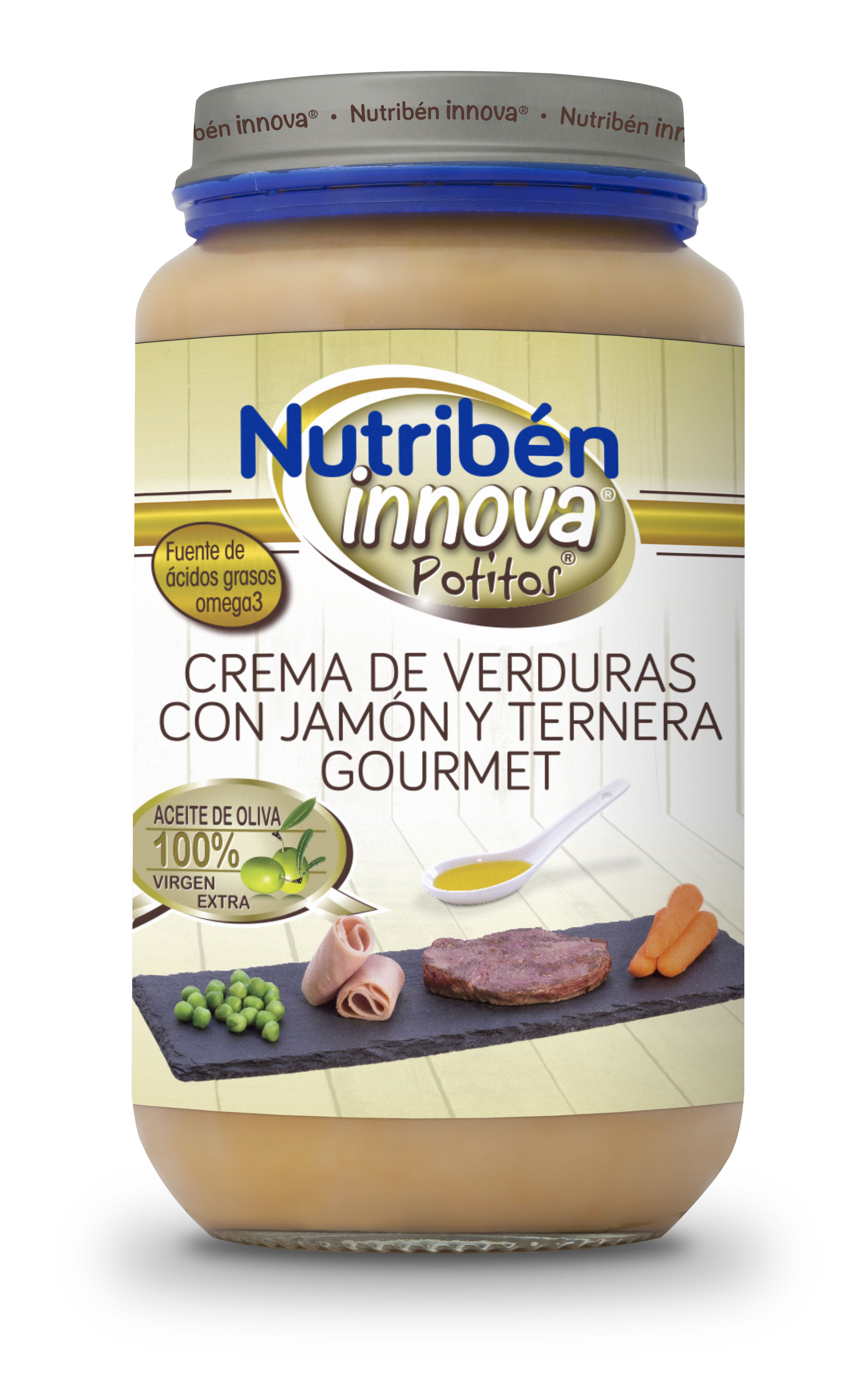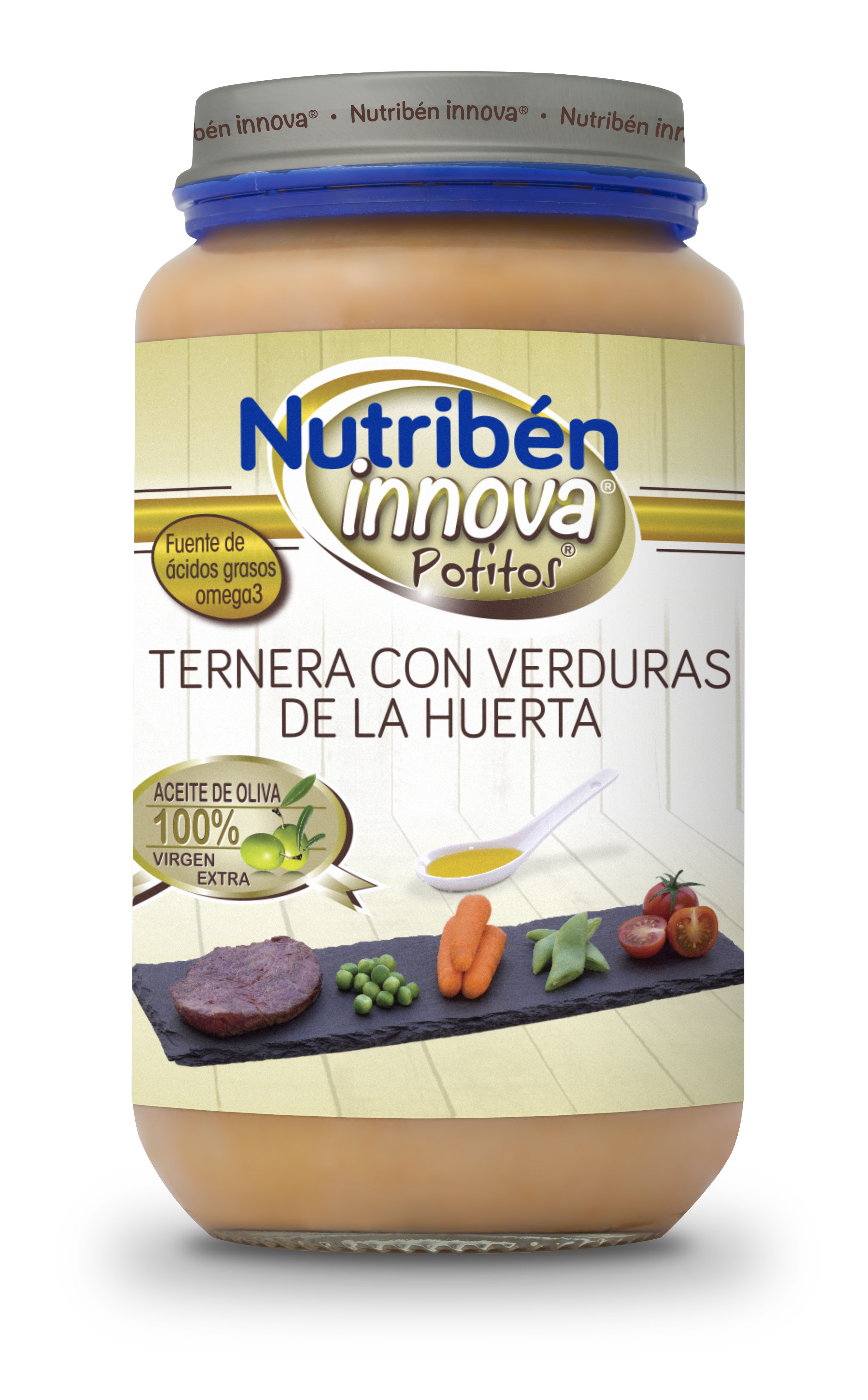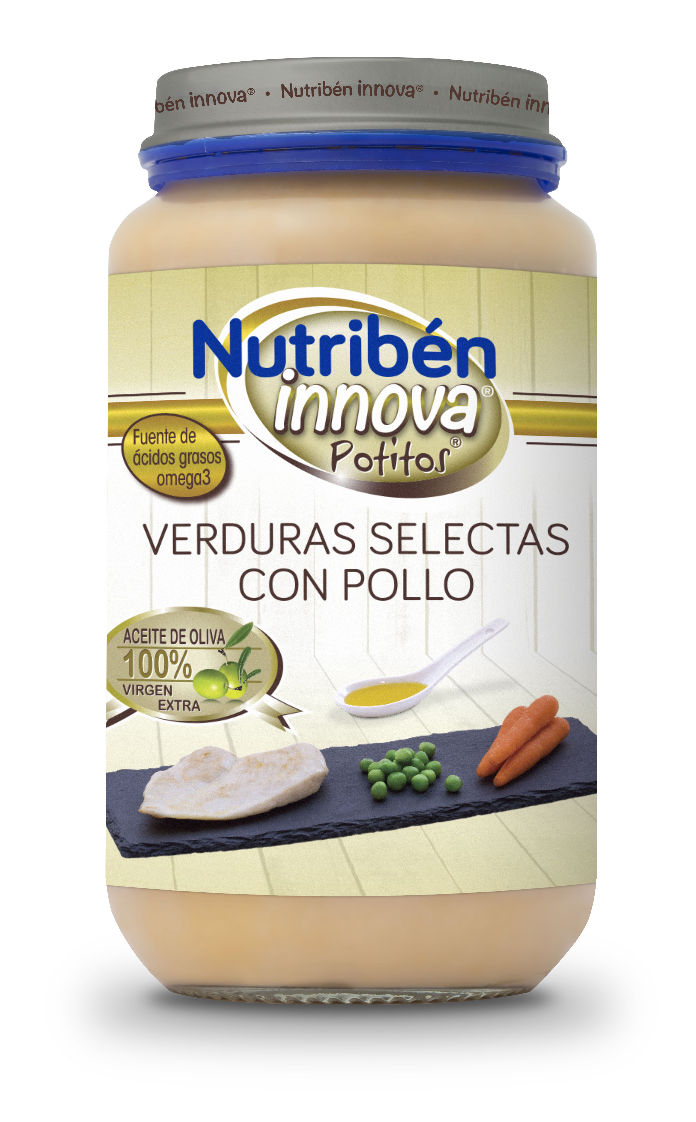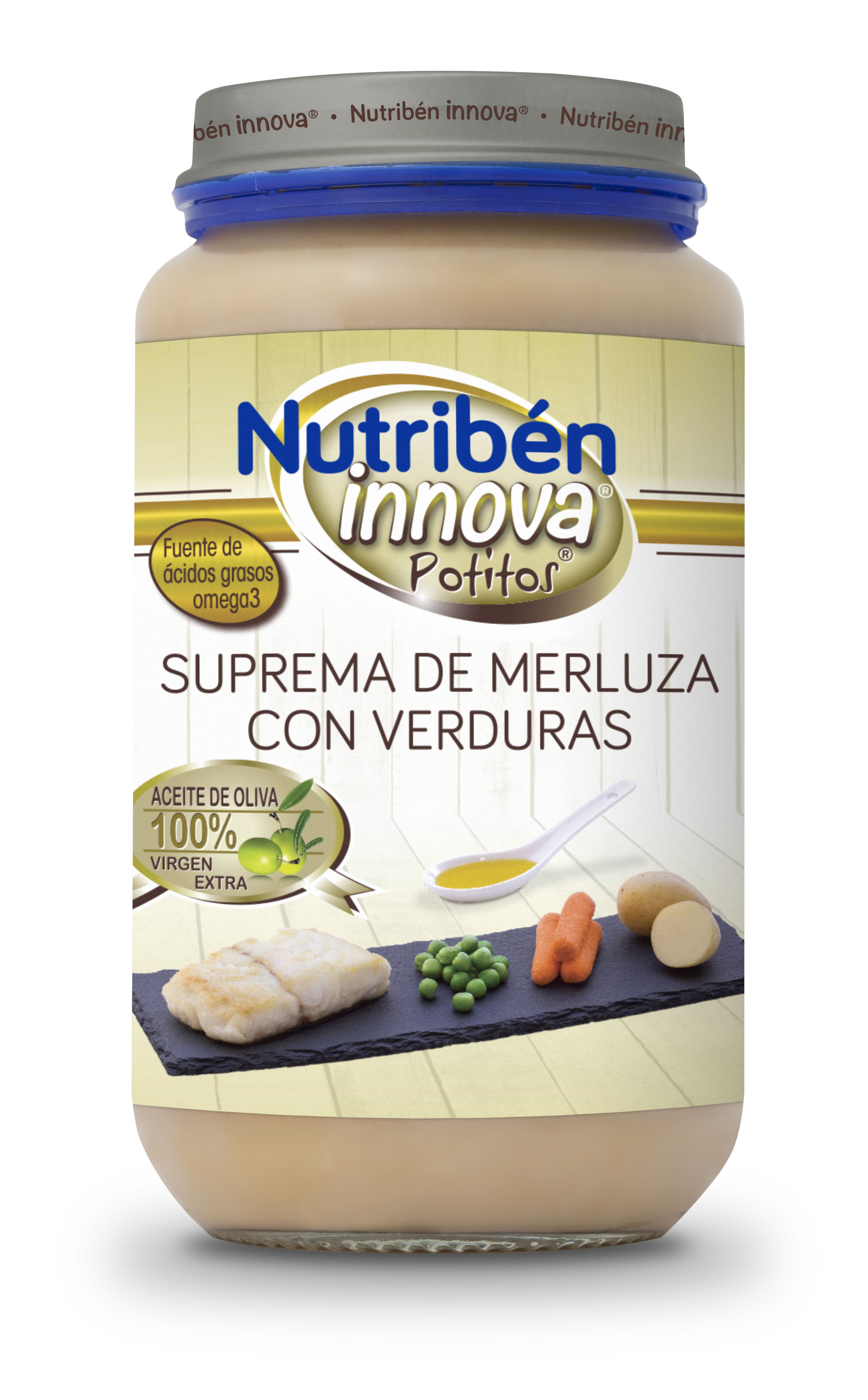 Con un equilibrio nutricional adecuado(3)y con los máximos estándares de seguridad, los potitos® Nutribén Innova® están enriquecidos con Omega 3 y con aceite de oliva 100% virgen extra. Además no contienen azúcares añadidos ni aceite de Palma. Así como no presentan gluten, huevo ni sal añadida.