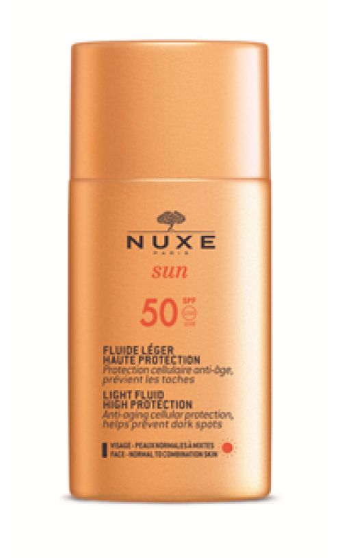 - con el nuevo NUXE Sun Fluido Ligero SPF50, una textura ligera para agitar ¡perfecta para las pieles mixtas!