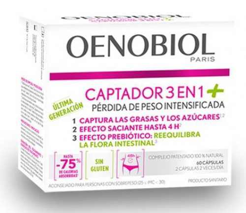 OENOBIOL CAPTADOR 3 EN 1 PLUS+ ayuda a conseguir una pérdida de peso intensificada por lo que es ideal para personas con sobrepeso instalado hace más tiempo.