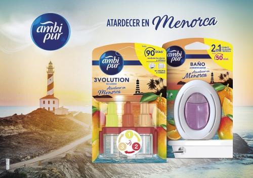 ¿Te imaginas la sensación de estar en Menorca sin tener que salir de tu casa? Ambipur, la marca de ambientadores y fragancias de P&G, lo ha conseguido con un aroma que evoca un atardecer en la insólita isla mediterránea. “Atardecer en Menorca”, la nueva fragancia de Ambipur, combina toques de naranjas y pomelos con exuberantes frutas tropicales como mango y melón, creando un aroma fresco y exótico que provoca una autentica explosión de los sentidos.