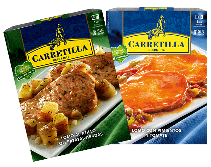 Lomo al Ajillo con Patatas Asadas y Lomo con Pimientos y Tomate son las dos nuevas recetas de Carretilla dentro de la gama de platos Listos de Carne que ya cuenta con ocho referencias distintas. En todas, la textura de la carne está en su punto, tienen un sabor casero y cuentan con guarniciones tradicionales propias de nuestra dieta mediterránea como acompañamiento. Se presentan en una barqueta individual apta para microondas. Además, gracias a su fácil apertura, son una opción ideal para comer directamente en el propio envase en cualquier lugar. No necesitan de frío para su conservación y tienen una vida útil de un año.