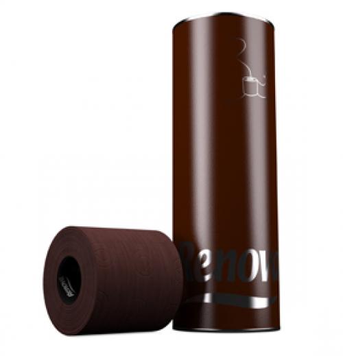 Renova rompe de manera fuerte y arriesgada uno de los tándems más arraigados en nuestra mente lanzando un papel higiénico de color íntegramente marrón. El Renova Brown, que así ha sido bautizado, se presenta en exclusivos packs de tres rollos dentro de un tubo de cartón con tapa metálica.