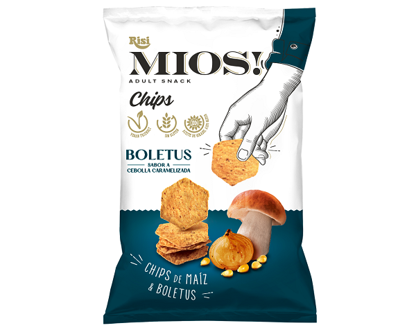 Risi va más allá con el nuevo sabor de su snack adulto, los nuevos Míos! de maíz y boletus con sabor a cebolla caramelizada, ideales para los amantes del boletus y de los sabores diferentes y singulares. Al igual que el resto de snacks de la gama, están hechos con ingredientes saludables, aptos para veganos y celíacos.