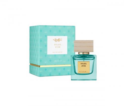 Inspirado por la luminosidad de un verano eterno, Soleil D´Or perfuma a la mujer con notas de una generosidad cítrica y floral que flotan en un agua cristalina y pura. Un perfume que traduce el buen karma estival con una salida de bergamota y mandarina, un corazón líquido de flor de loto y acordes acuáticos y un fondo de madera de cedro y almizcle.