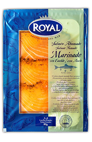La marca Royal acaba de lanzar al mercado una nueva referencia lista para consumir: Salmón Ahumado Marinado condimentado con sal, pimienta blanca, brandy y eneldo.