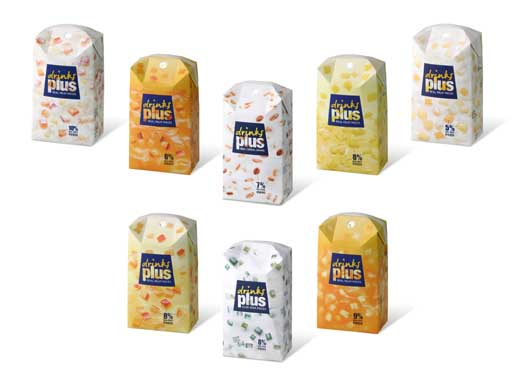 Una de las novedades más destacadas de SIG en 2009 fue drinksplus, una solución que hace “perceptible” el valor añadido de un producto al añadir a las bebidas extras naturales como trozos de fruta y verdura o cereales. Este concepto abre el camino a categorías de productos completamente nuevas en línea con la actual tendencia de consumo de salud y bienestar. De esta forma, ya se pueden llenar productos con un 10% de partículas en envases de cartón asépticos con las máquinas llenadoras estándar de SIG para lácteos líquidos y refrescos sin gas, que permiten llenar hasta trozos de 6 mm de largo y diámetro.