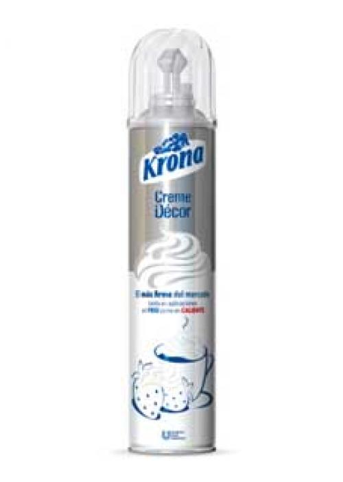Unilever Food Solutions ha lanzado al mercado Krona Créme Decor, nata en spray para la creación de postres dirigido al sector de la restauración. Este producto se puede usar como complemento de frutas, decoración de tartas u otros postres calientes, así como sobre chocolates y cafés. Una vez emplatado, aguanta firme hasta 15 minutos en temperatura ambiente y 9 minutos en superficies calientes. La gama de productos que ofrece Krona está formada por Krona Original, para cocinar y montar; Krona Pastelera, especial para montar; Krona Culinaria, especial para cocinar; y Krona Creme Décor en spray.