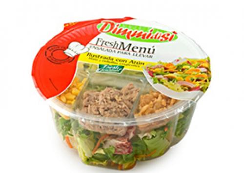 Vegetales Línea Verde Navarra ha estado presente un año más en el Congreso AECOC de Frutas y Verduras donde ha presentado la nueva ensalada Fresh Menú con atún. Comercializadas con la marca DimmidiSì, estas ensaladas son ideales para disfrutar de una comida rápida, sana y completa en un formato práctico.