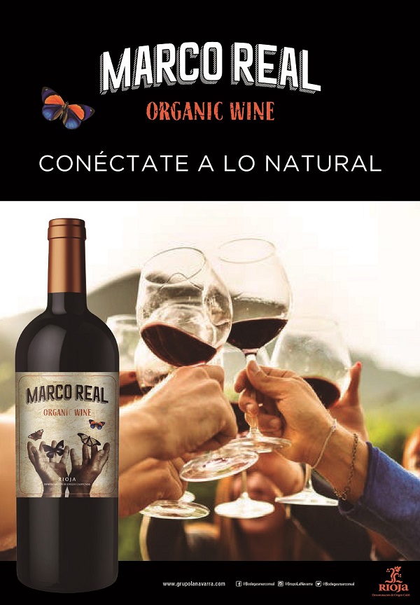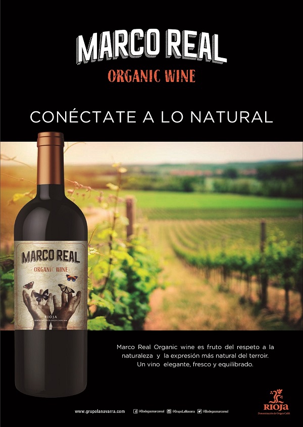 Vinos y Bodegas Marco Real, dentro de su nueva estrategia de apertura a otras denominaciones de origen, comienza una nueva etapa con Marco Real Organic Wine, su primer vino ecológico, que ha elaborado con las variedades Tempranillo (60%), Garnacha y Graciano procedentes de una selección de viñedos de agricultura ecológica de la DO Rioja. Para su elaboración se han buscado viñedos muy cuidados que siguen los criterios de una viticultura sostenible.