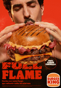 La receta combina su carne 100% a la parrilla con un esponjoso pan brioche con marca de parrilla, salsa King Flame y un queso con notas ahumadas que eleva a la enésima potencia ese sabor único Burger King® que tanto enamora a sus fans. En sus versiones de carne de vacuno, y pollo, Full Flame podrá disfrutarse desde hoy y por tiempo limitado en todos los restaurantes de la cadena y a través de los distintos canales de distribución de la marca.