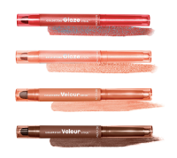 Glaze Stick Eye Shadow - con brillo - disponible en los tonos Luster y Rose y Velour Stick Eye Shadow - con acabado mate - incluyendo las tonalidades Cashmere y Truffle.