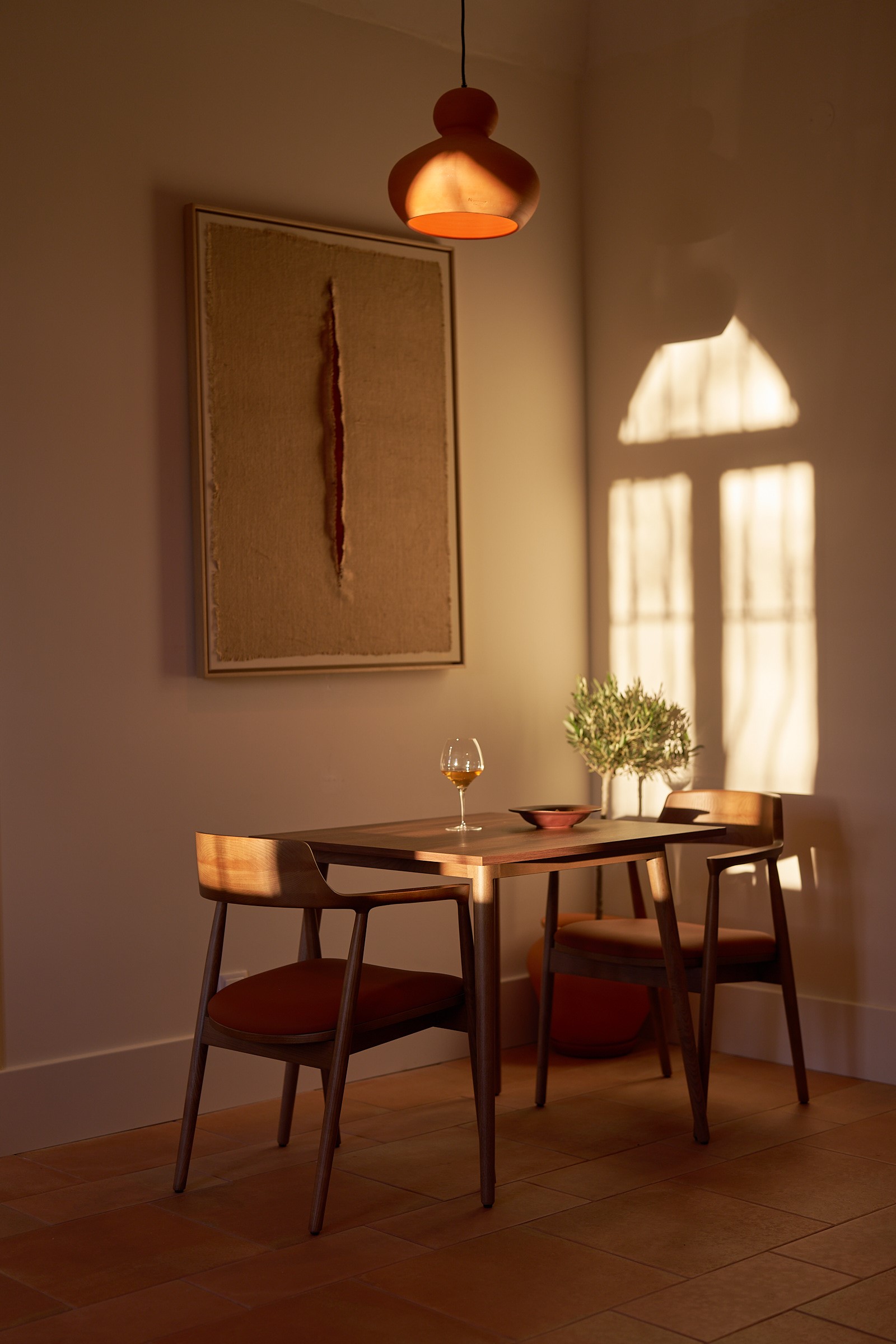 Para la ocasión, el restaurante ha creado un menú especial que recorre texturas y matices del Alentejo, con guiños a la brasa, al aceite de la casa y a la intensidad de un final inesperado. El menú comienza con pan de fermentación natural, aceitunas y mantequilla de ajo y hierbas, acompañado del aceite de Forno da Telha. Continúa con un entrante de huevo a baja temperatura, setas del campo, poleo y pan alentejano, y ofrece un principal a elección entre corvina braseada con arroz “malandrinho” de bivalvos y cilantro, o lomo de cerdo preto con migas alentejanas, naranja y jugo de carne.