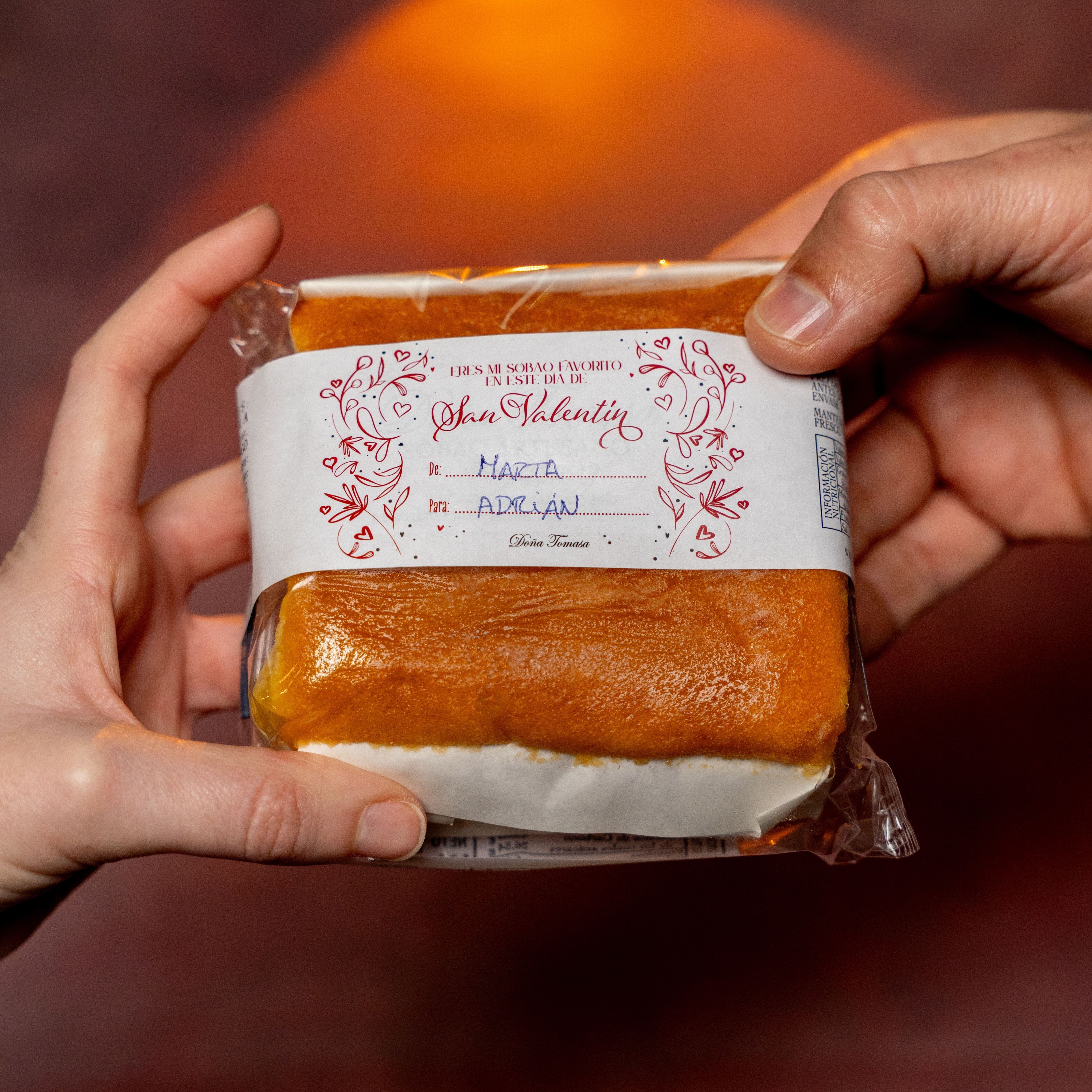 Un gesto mínimo que transforma un producto cotidiano en un mensaje directo. Porque hay muchas formas de decir “te quiero”, pero con un dulce siempre es mejor. Sin explicaciones, sin artificios. Solo abrir la caja, partir el sobao y compartirlo con tu ser amado.